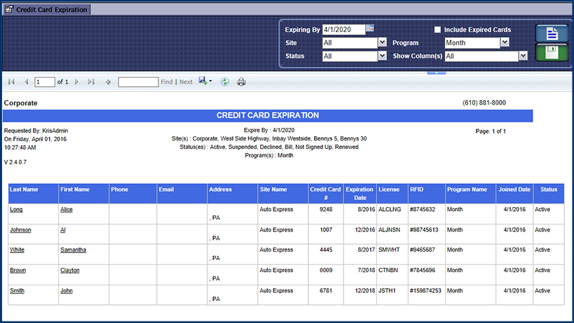 - On the Clubs menu, click Reports, and then click Credit Card Expiration.