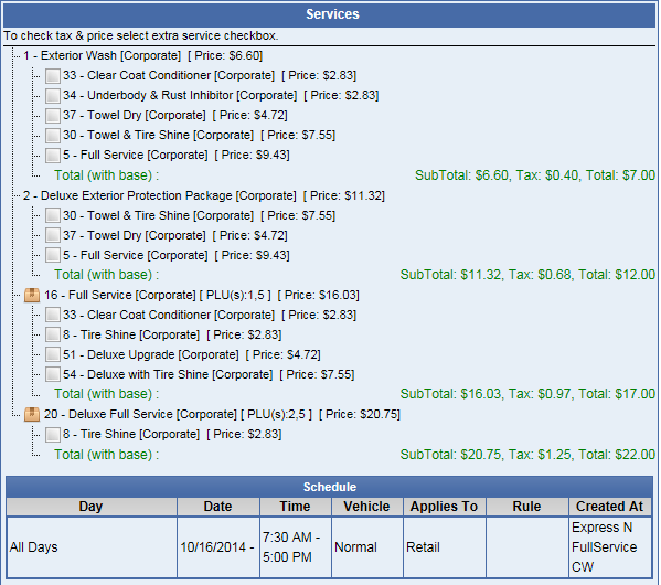 PLUs and profiles work together to give customers their wash menu choices. In most cases, you can create a standard set of PLUs for your basic washes which are used during normal operations. If you have four washes to sell, then a PLUs need to be created for each wash. The time and specific upgrades for each of these washes can be setup in the Retail Profile.