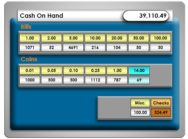 - The Total box tallies the dollar amount of all bills/coins for the device.