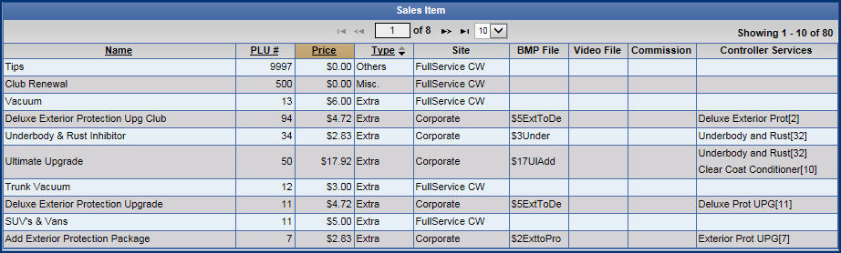 - Open a menu tab that will present data within a table format. Example shown is Configuration/Sales Item.
