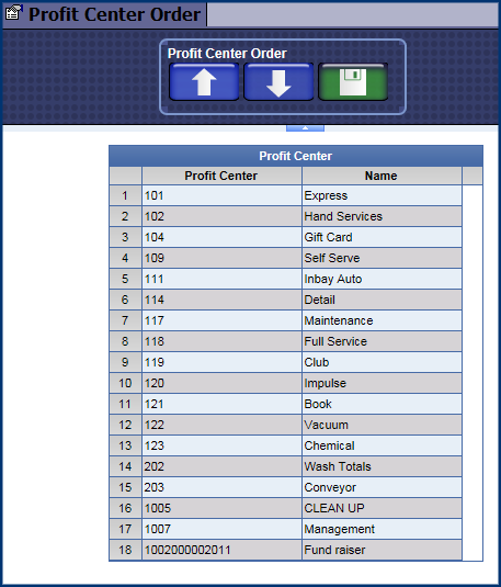 - From the System Setup menu, select Profit Centers, and then select Profit Center Order.