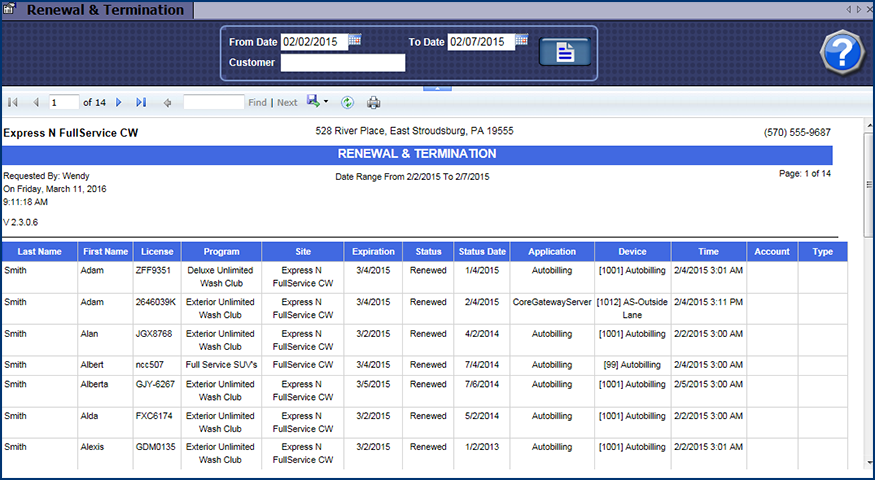 - On the Clubs menu, select Reports, and then click Renewal &Termination.