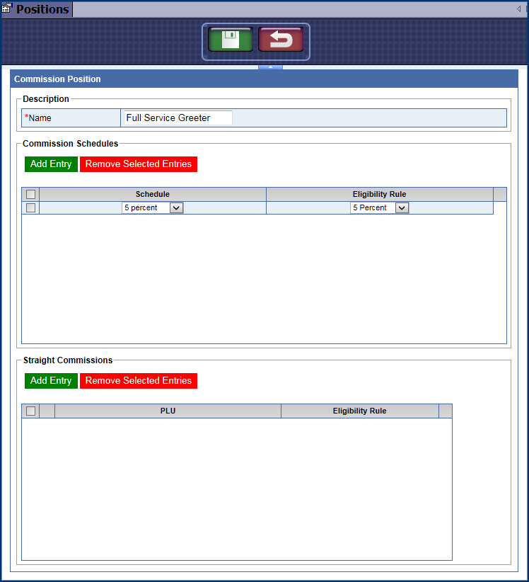 NOTE: If no eligibility rule is created and selected, but instead Always is selected for the Position's eligibility rule, the commission will be 5% commission on any item, not just the full-service Profit Center.
