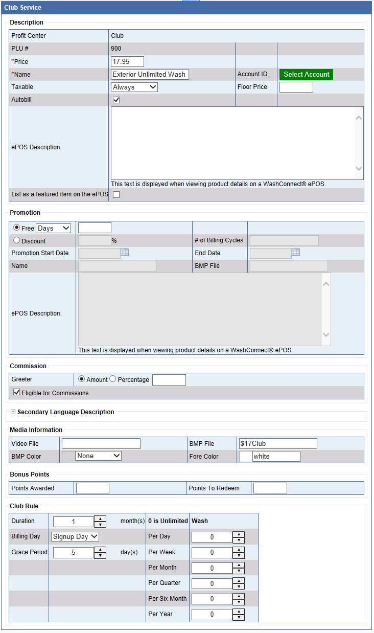 For Step Two in setting up a club, setup up a discount PLU for the wash price, see Add Sales Item.