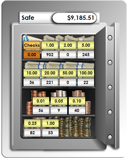 To assist in verifying if the amounts in the safe are correct the Terminal Balances of the safe can be used and compared to the actual verified amounts in the safe.  If the physical count and the count that Cash Management states is in the safe is off, a Verify Safe will need to be done to correct the software.