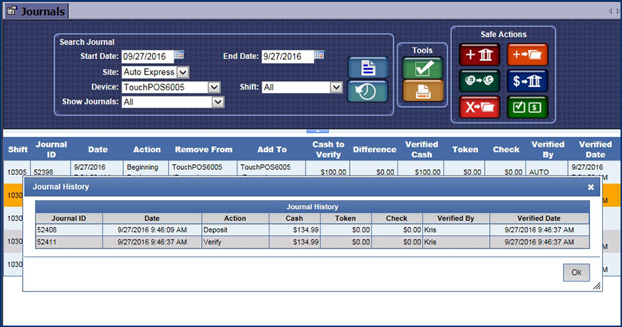 The journals for that shift and device appears.