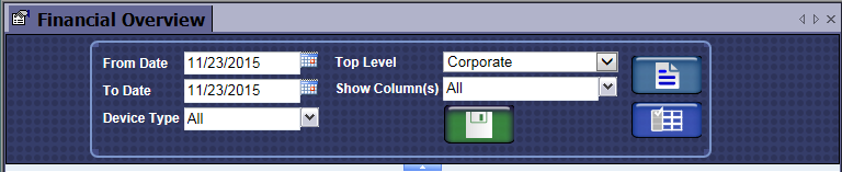 - In the Top Level box, select the top most level you would like to view on your Financial Overview Report (derived from the levels defined for your organization). For example, levels might be Corporate, Region Level, State Level, and Site Level. If you select Region Level, then the report summarizes data beginning with Region (not Corporate) as the highest level.