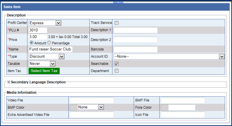 - In the Type box, select Discount. (After you save this PLU, the discount number will be a negative number.)