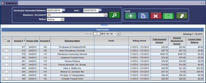 - From the Fleet Invoice list, click to select a Fleet Invoice Record.