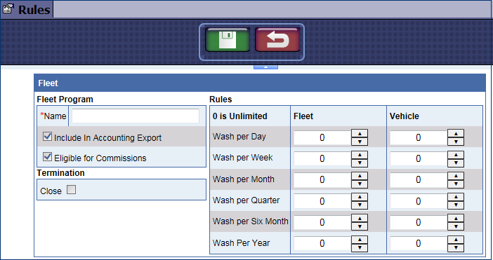 NOTE: In setting up the rules for an unlimited club, all zeros are used meaning club customers can use the wash as many times as they like. However, if the Wash Per Day value is set to zero, this means customer may also use the wash multiple times per day. The ascending order guideline is not required by the software. Any combination of positive integer values and zeros is valid, whether they are in ascending order or not.
