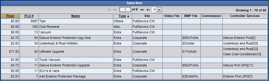 - Open a menu tab that will present data within a table format. Example shown is Configuration/Sales Item.