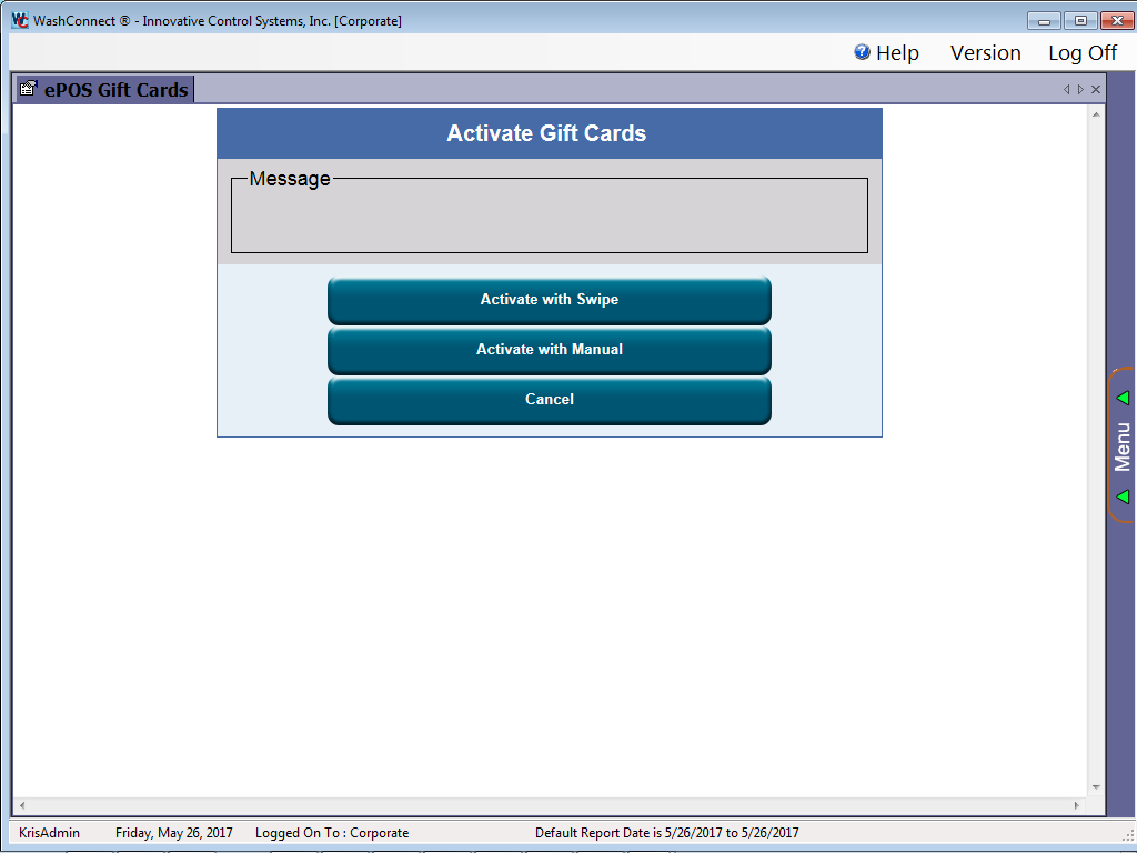 NOTE: The ePOS Gift Cards tab is used for WashConnect ePOS gift card purchases only.