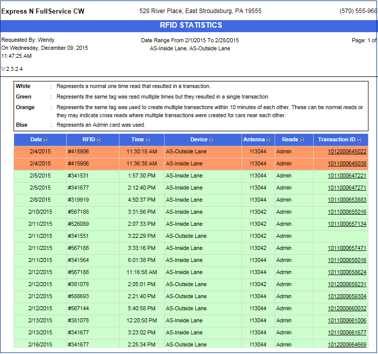 View RFID Transactions Reads