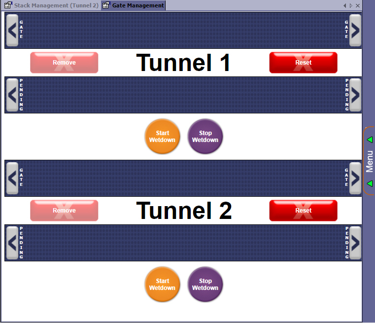 Gate management is meant to allow cars to go through the gates in an orderly fashion. When a car pulls through the gate, it drives over a small loop in the ground that usually is placed where all the lanes merge. It is commonly called the Merge Loop. From that point, the car is moved from the Gate Queue to the Stack. This tells the system to allow the next car to go through. The next car at the Auto Sentry will see the message “Please Wait, the Wash is Busy.” If the system never receives that signal, the next car will have to wait until a timeout (default of 60 seconds) is reached or the car enters the tunnel.