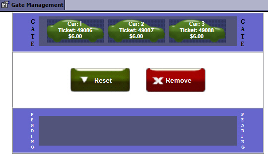 Touch the Reset button on the Gate Management screen. This will simply send the next car.