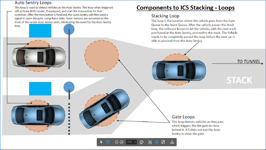 Stacking Loop is recommended by ICS. Using the Stacking Loop ensures that the cars entering the wash are doing so in the correct order.