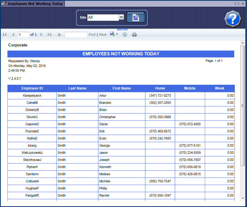 Use your time clock report to access your list of Employees Not Working Today.