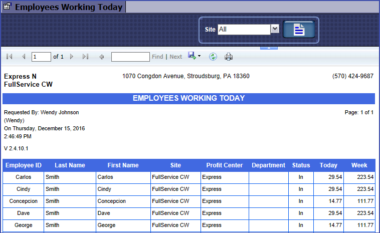 Employees Working Today report can be pulled by individual sites or all sites.