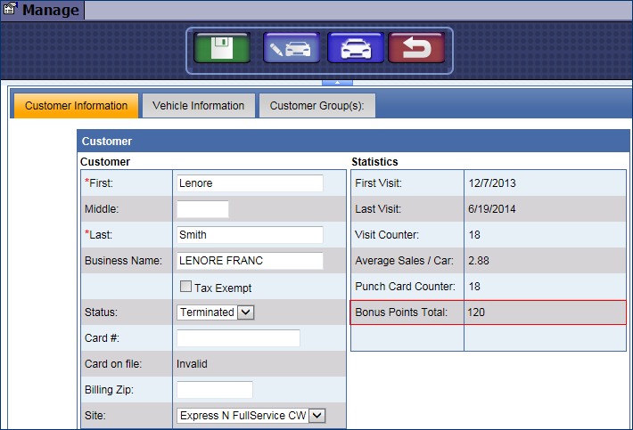 - From the Customer Information tab, you can view Bonus Points Total from the Statistics section.
