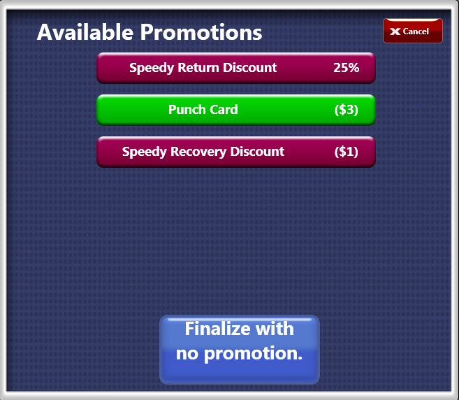 The punch card promotion is now configured for all Eligible Customers. The WashConnect® system tracks the customers Promotions and Purchases, and the system will advise if available promotions exist for customer before transaction is finalized. Customer can redeem multiple punch card promotions.
