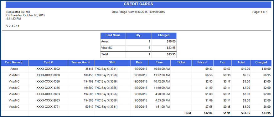 - With both reports printed, compare the (translink) Credit Card Processor Detail report against the Credit Cards Report.