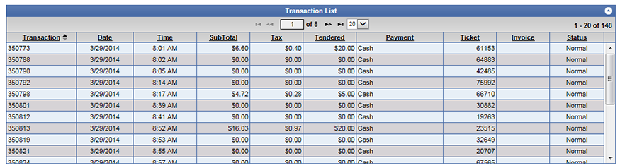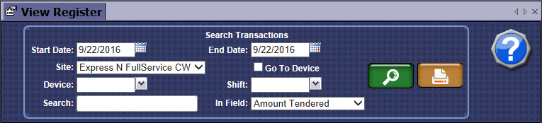 Throughout the day, various customer transactions take place at the Touch POS, Touch 'N Clean, and Auto Sentry terminals. You can go to View Register to search for a specific transaction or view a list of transactions for a designated date range.