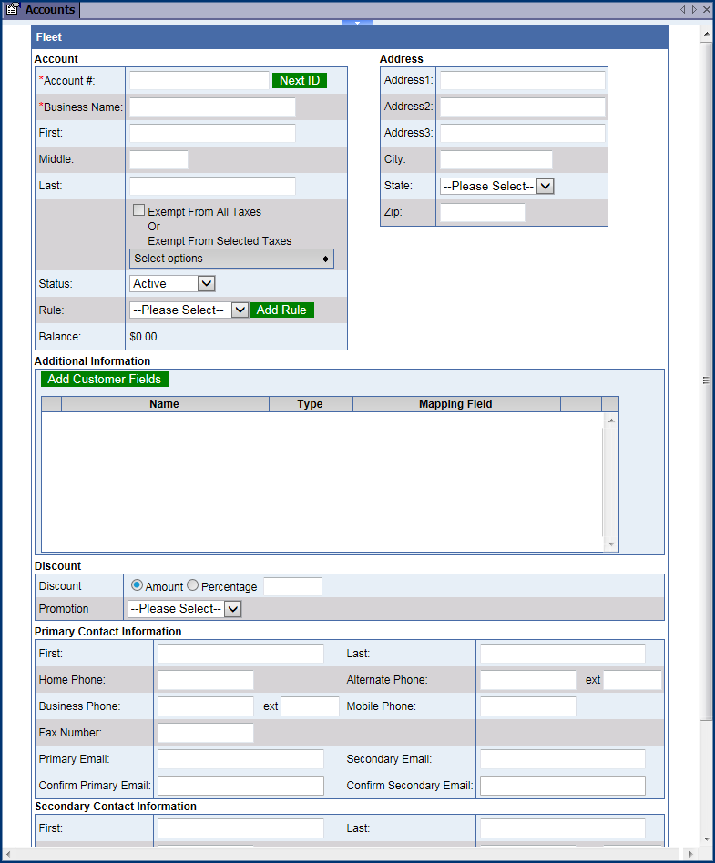 NOTE: User must have role privilege to select the Prepaid box when creating a new fleet Account.