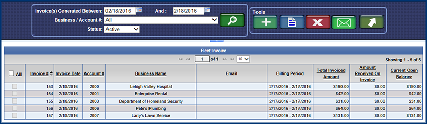 - When attempting to generate an Invoice for a Fleet Account with a non-billable amount such as $0, you can view it in the list but cannot generate or print the Invoice.