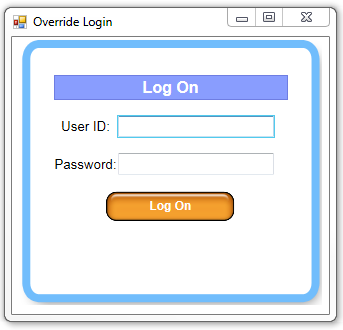 - If you Logged on as the default user, and clicked on an item that requires a User ID other than Default User ID, the Override Login window will appear.