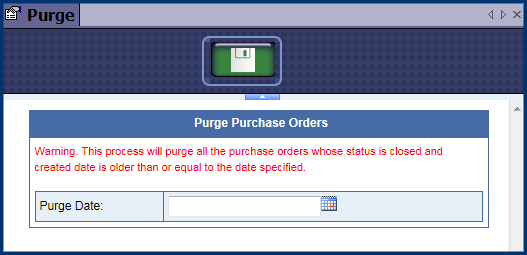 WARNING: This process will purge all the purchase orders whose status is closed and created date is older than or equal to the date specified.