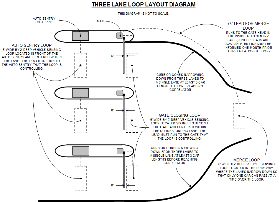 Gate management is meant to allow cars to go through the gates in an orderly fashion. When a car pulls through the gate, it drives over a small loop in the ground that usually is placed where all the lanes merge. It is commonly called the Merge Loop. From that point, the car is moved from the Gate Queue to the Stack. This tells the system to allow the next car to go through. The next car at the Auto Sentry will see the message “Please Wait, the Wash is Busy.” If the system never receives that signal, the next car will have to wait until a timeout (default of 60 seconds) is reached or the car enters the tunnel.