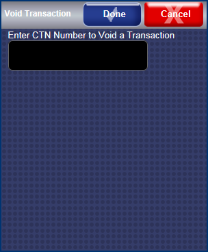 - From the customer’s receipt, type the CTN number in Enter CTN Number to Void a Transaction, and then press the ENTER key.