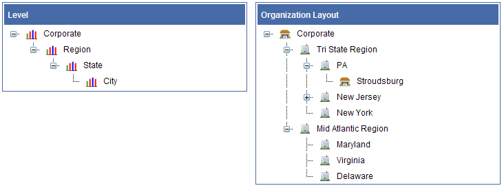 Before you create Users and Security Roles, review the following example to understand the Levels and Organizational Layout.