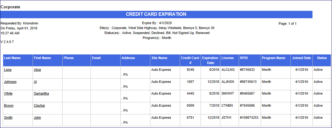 - On the Clubs menu, click Reports, and then click Credit Card Expiration.