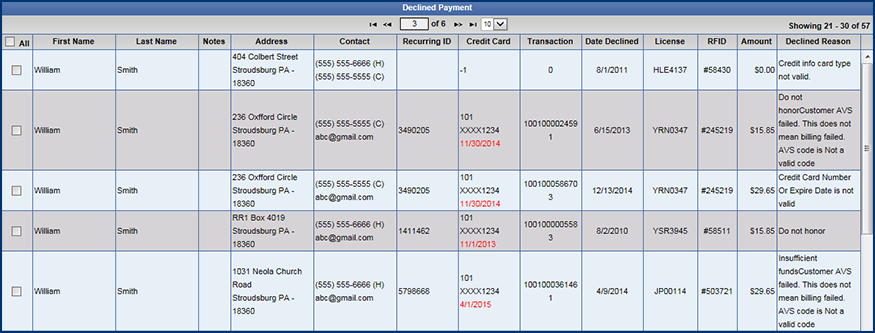 NOTE: You can also view the Declined Reason for credit card payment directly from the Manage Customer List from the Customer menu.