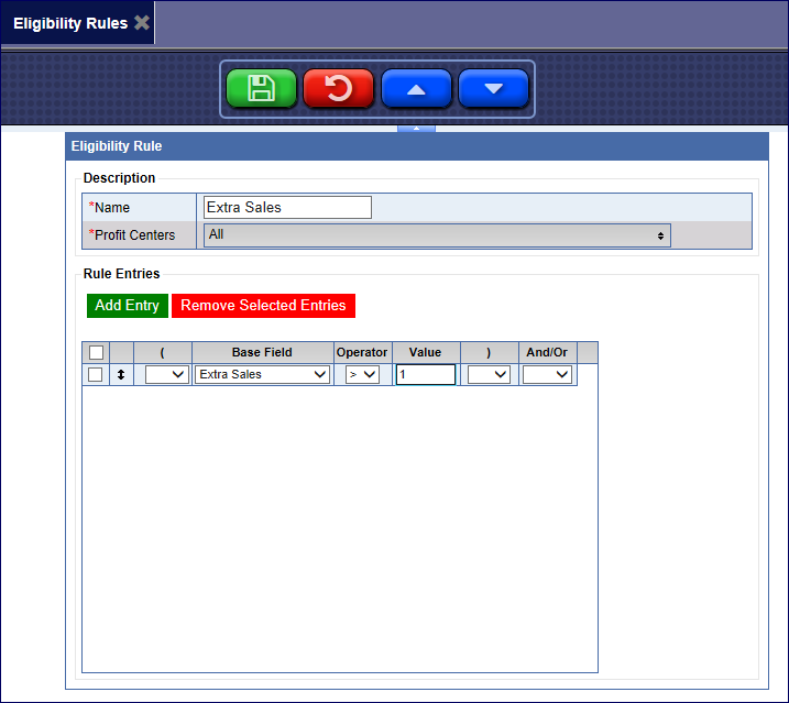 NOTE: To delete entries: Click to select an Eligibility Rule from the list, and then click the Remove Selected Entries button.