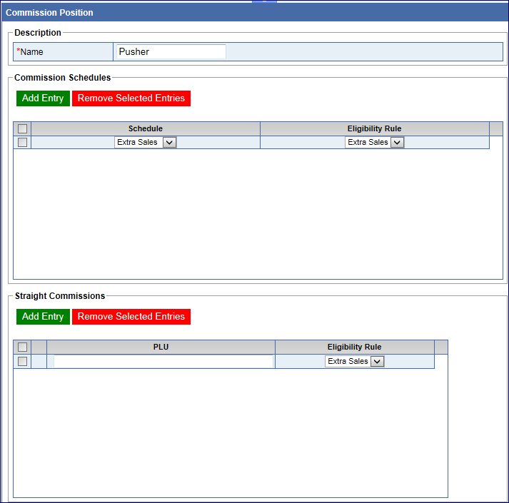 - In the Name box, type a name for the Commission Position. (This can be a different or the same name that you used for Schedules and Eligibility Rules.)