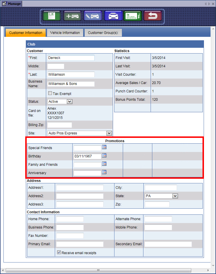 NOTE: The customer’s birthday or anniversary must be entered Customer Information in order for this promotion to apply.