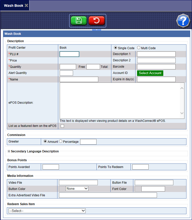 For each Wash Book offering, set up a Wash Book PLU Sales Item.