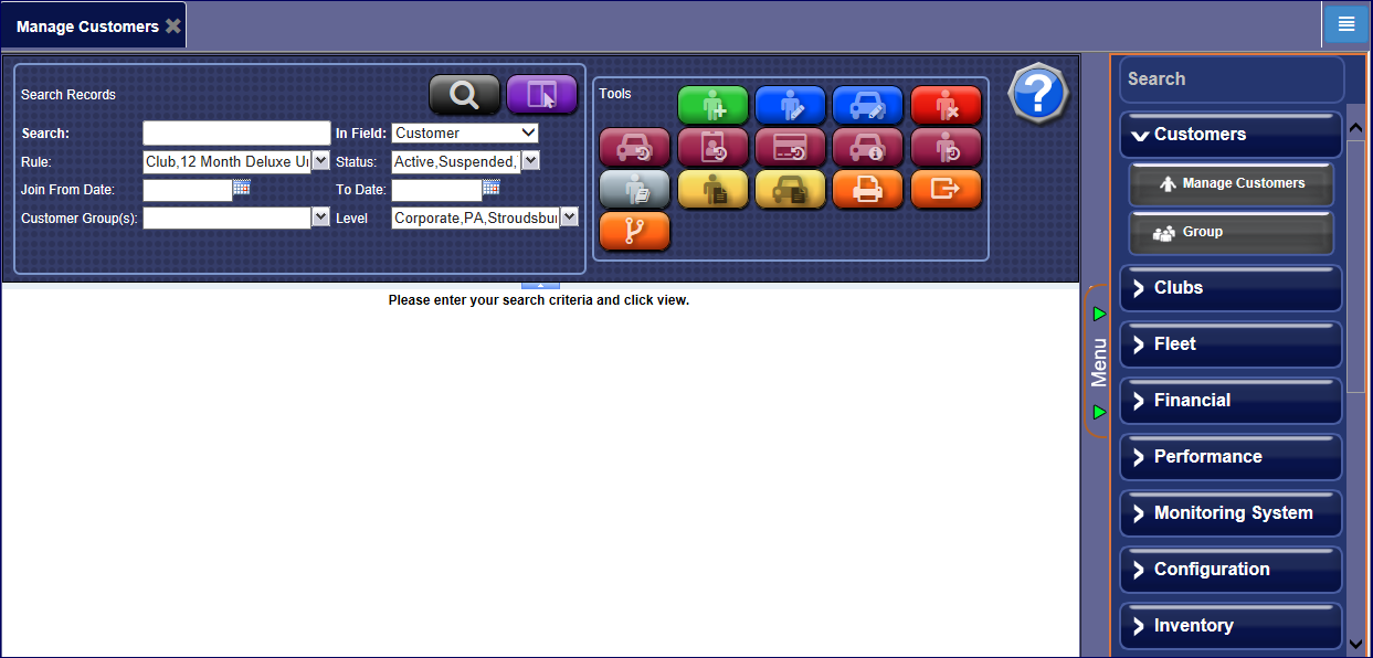 Users have the ability to view and print only certain columns on the Manage Customers page by using the Select Columns button.
