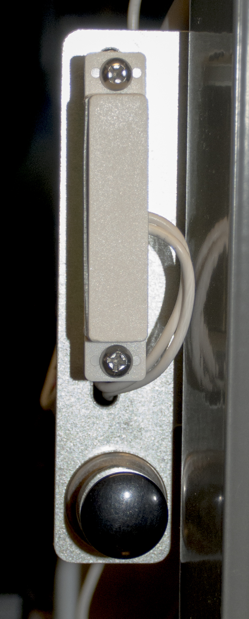 - Open the door with a hex key, and then locate either one of the service buttons: in the upper-left chamber or in the lower chamber.