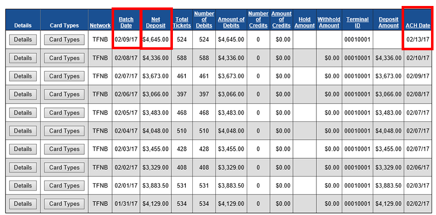 This report will tell you when the Batch was processed, the Net Deposit, and the ACH Date which is the expected date the Net Deposit will be in your bank account.