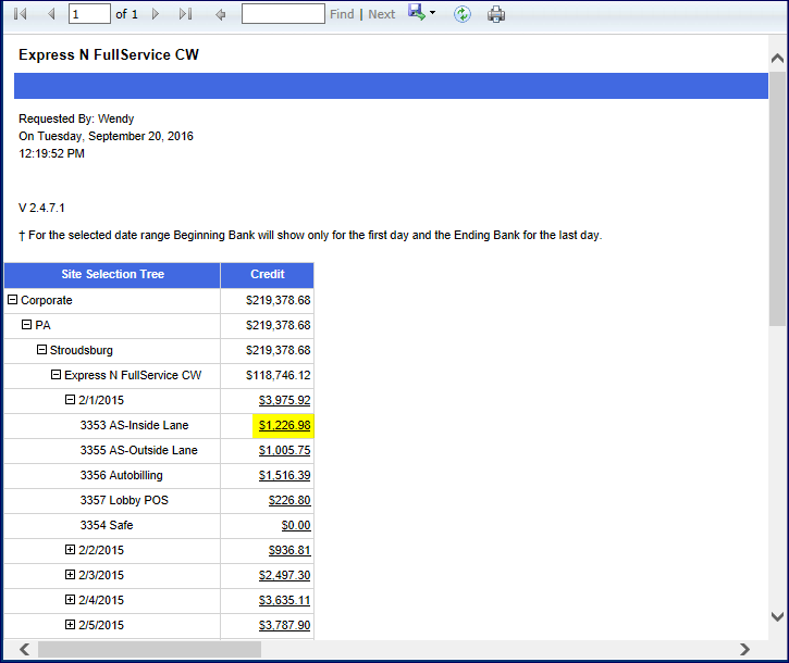 You can look at totals for credit cards, fleets, and clubs at a glance. You can then click any underlined total in the report to open a more detailed report in a new tab.