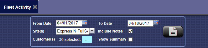 - On the Financial menu, click Register Reports, and then click Fleet Activity.
