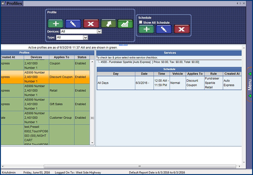 - When the schedule is enabled for the discount coupon profile, it will call the Retail Profile for the fundraiser wash packages that were created.