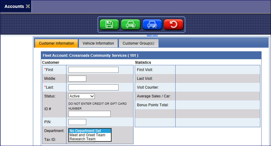 NOTE: If it's necessary to assign customers to separate Departments with their own department's Fleet rules, see Add Departments. Otherwise, they will use the rules tied to the Fleet Account. If the customer is assigned to a department, the rules associated with the department override the Fleet Account rules.