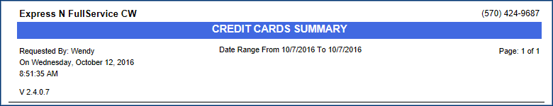 - Your Car Wash name and phone number appears above the report Title Bar.