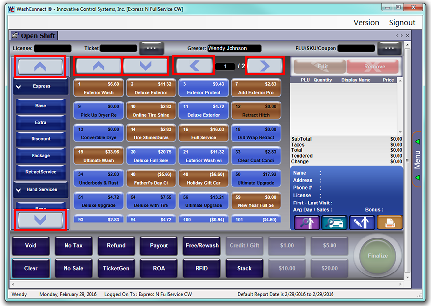 You can use the scroll buttons on the POS screen to view more menu items and PLU items.