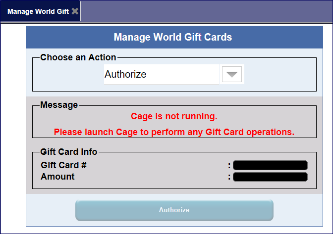 You can Authorize a Gift Card Amount from Manage World Gift.