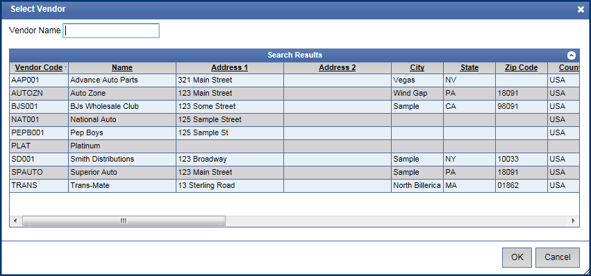 NOTE: The Vendor list is populated at Corporate.